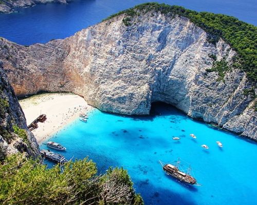 Zakynthos, eine der Ionischen Inseln, ist bekannt für ihre atemberaubenden Strände, darunter die berühmte Schmugglerbucht (Navagio) mit ihrem ikonischen Schiffswrack.