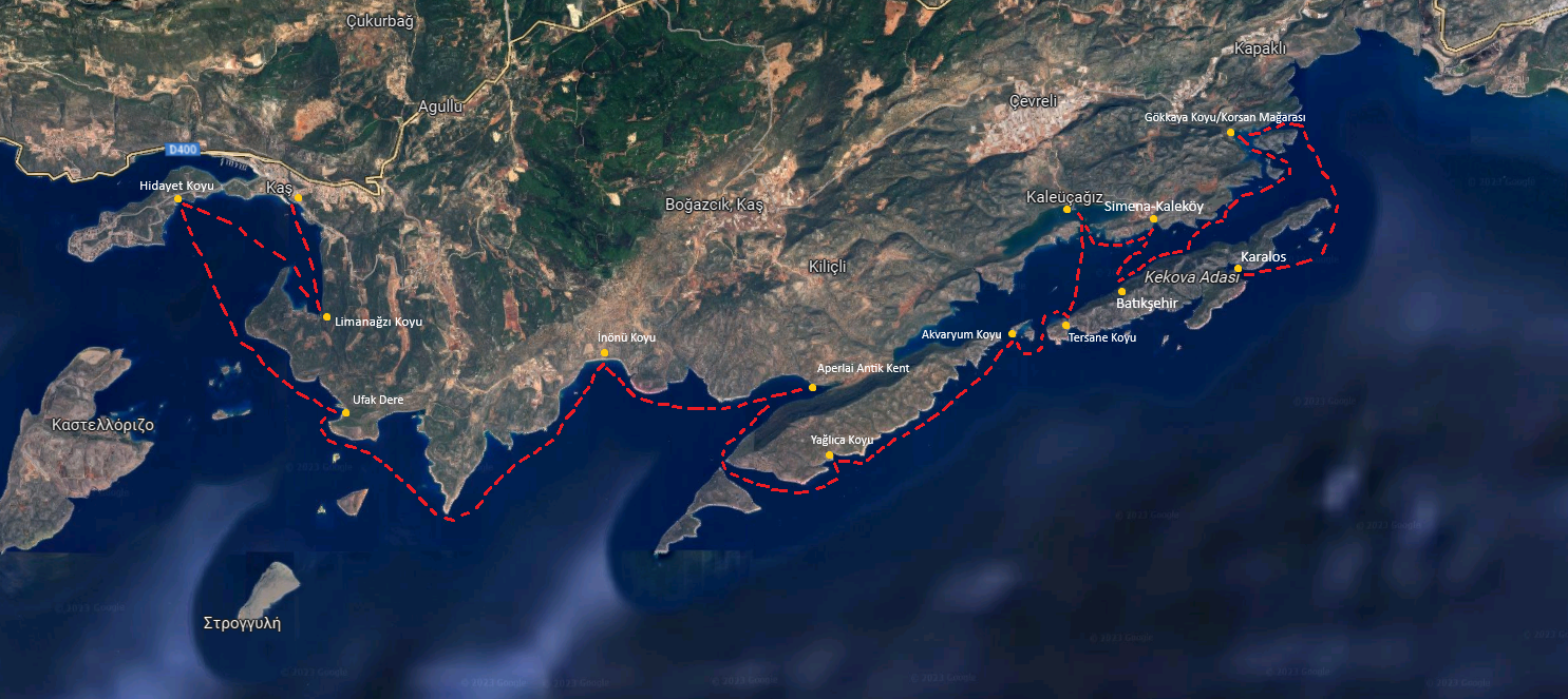 Nach Kekova können Sie vom Hafen an der Küste von Demre aus mit dem Auto die antike Stadt Myra und das St.-Nikolaus-Museum erreichen. Der Strand von Çayağzı hat einen Sandstrand. Süßwasser fließt von beiden Seiten ins Meer. Der Hafen und Strand von Çayağzı bietet aus der Vogelperspektive, wenn man von Kaş nach Demre kommt, einen einzigartigen Anblick, insbesondere bei Sonnenuntergang.