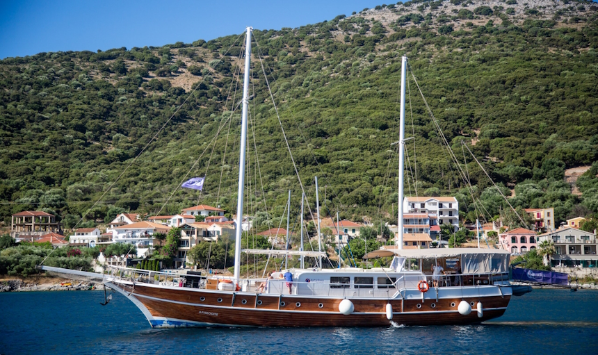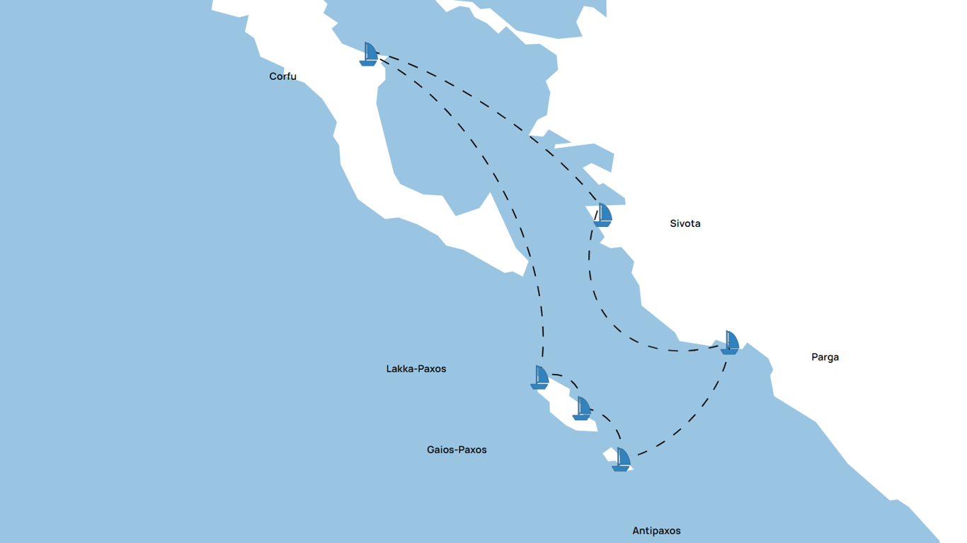 Hinweis: Das Schiff kann nicht am Yachthafen von Lakka anlegen, deshalb legen wir an einer der zahlreichen, abgelegenen Privatbuchten an!